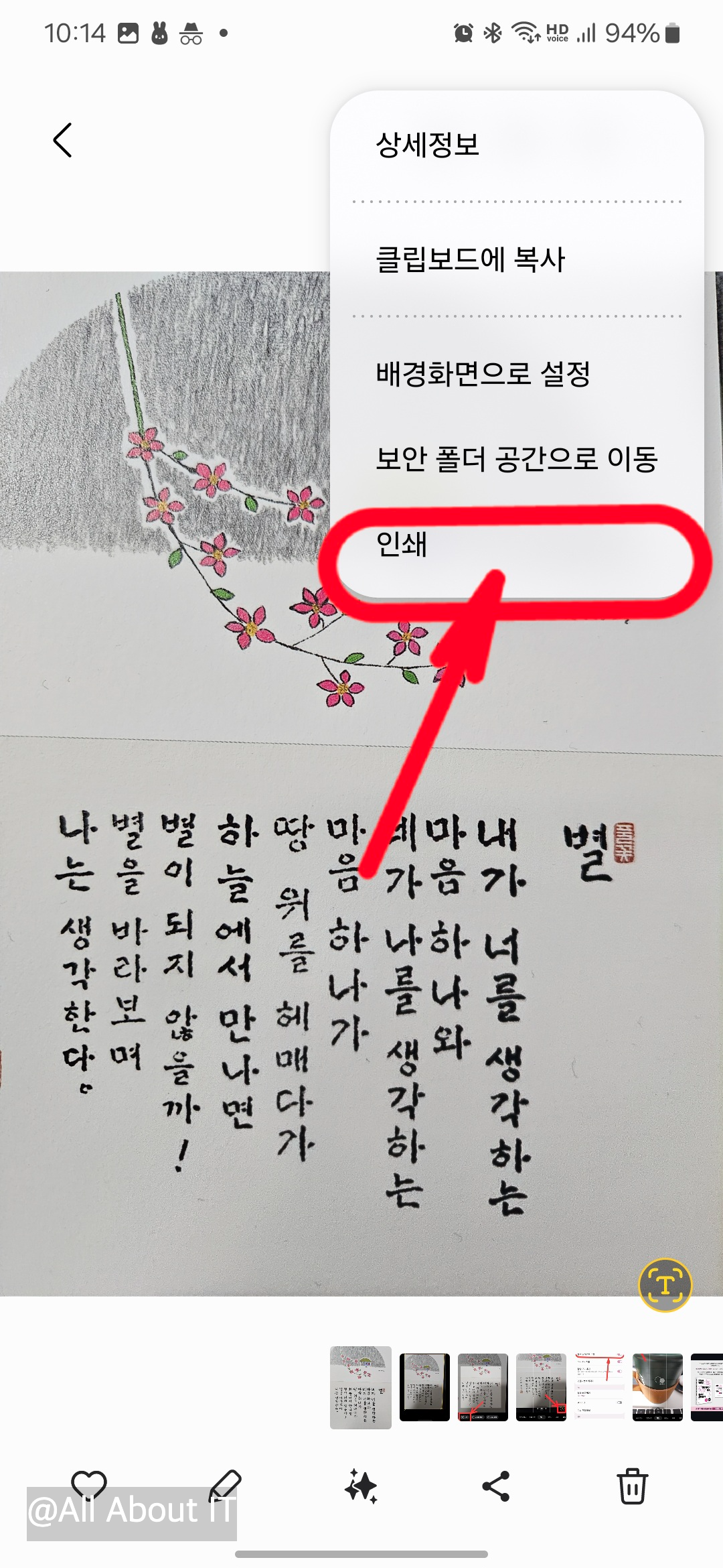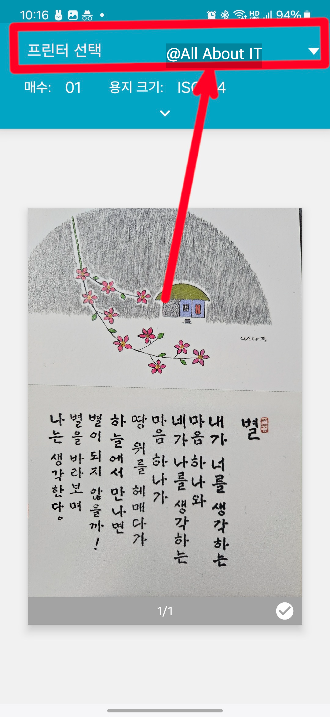 - 더보기 메뉴에서 인쇄 옵션을 선택합니다.