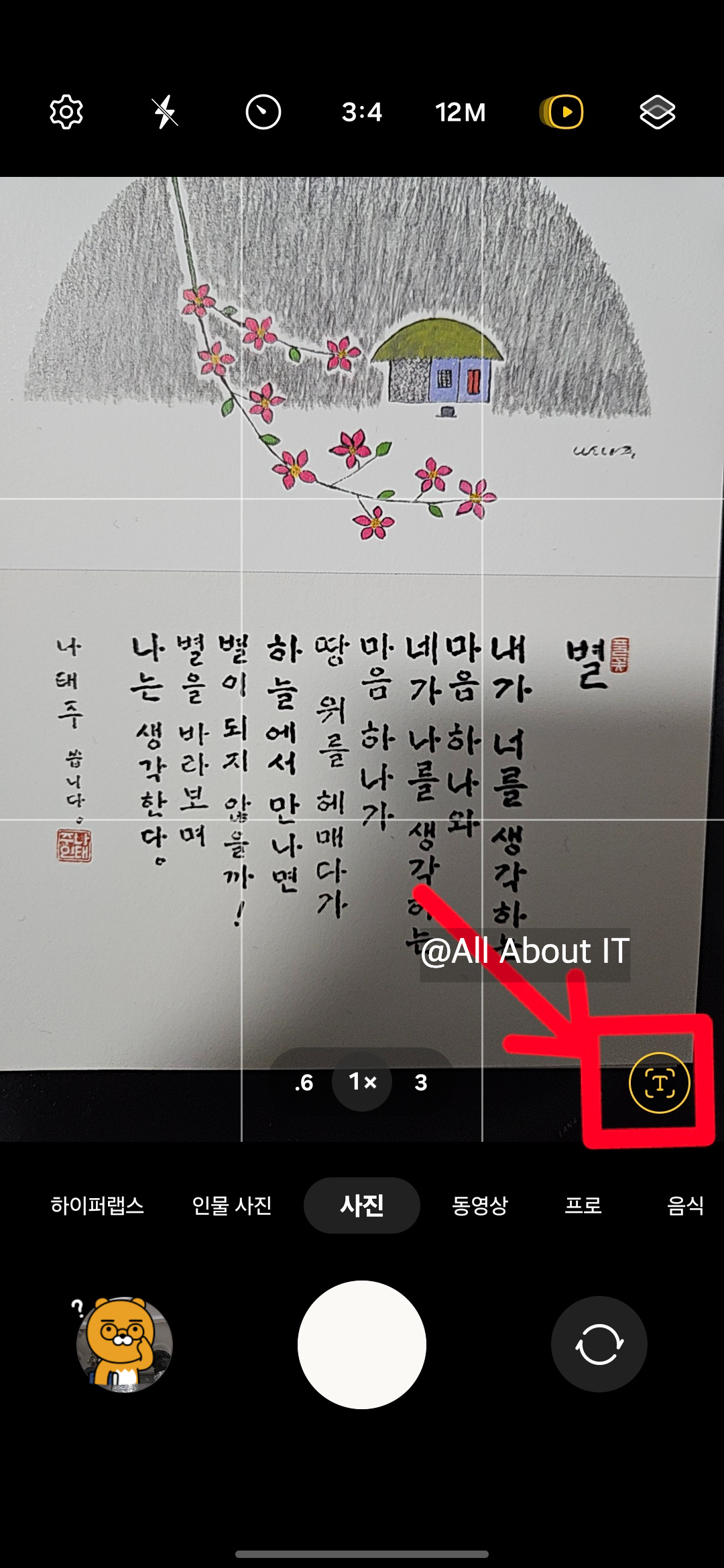 - 문서 모서리가 자동으로 인식되면 텍스트 아이콘을 눌러 스캔 모드를 활성화합니다.