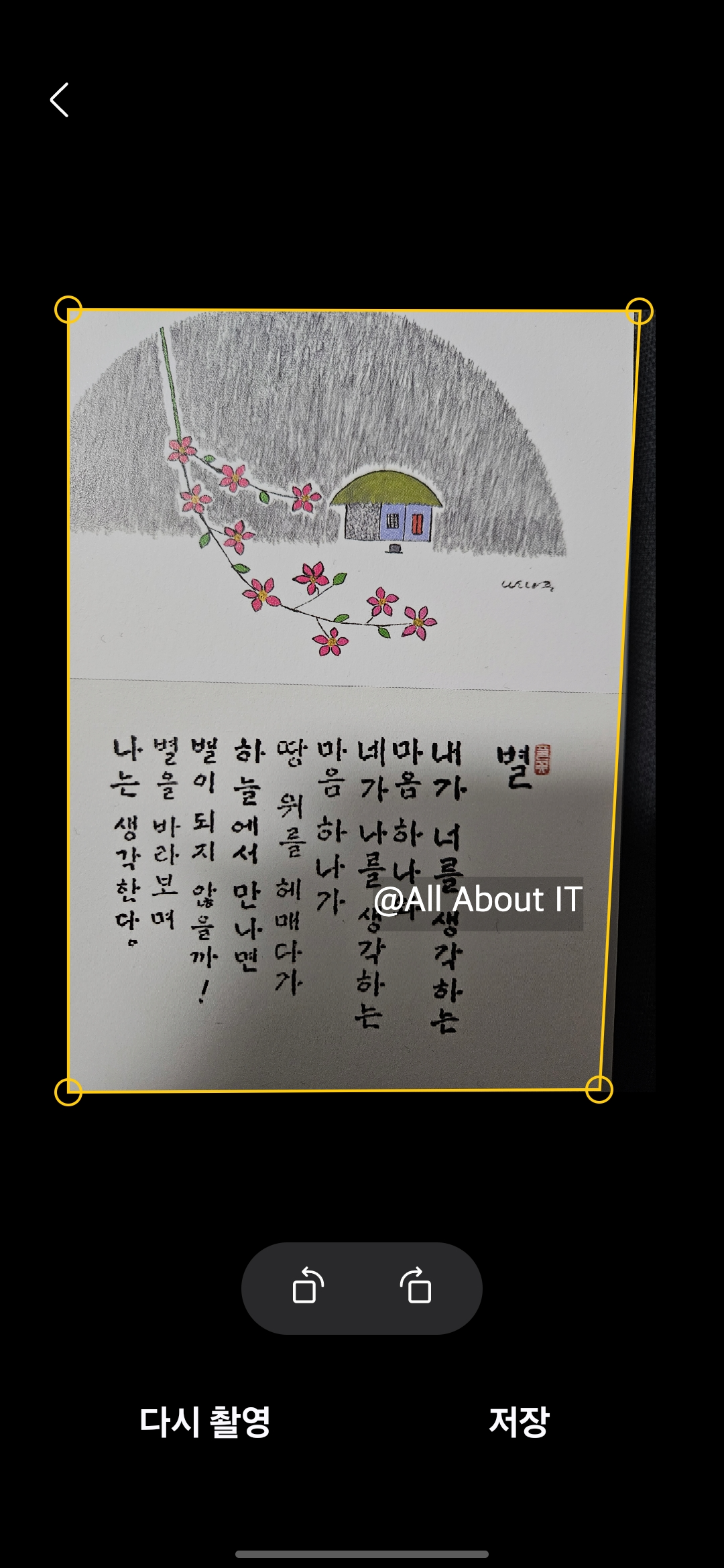 갤럭시 기본 카메라로 문서 스캔하는 방법