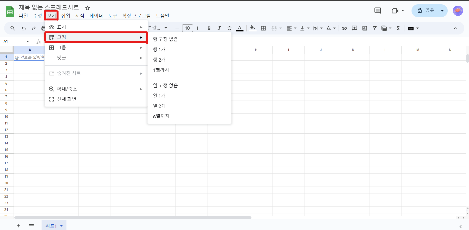 구글 스프레드시트에서 틀고정 설정하는 방법