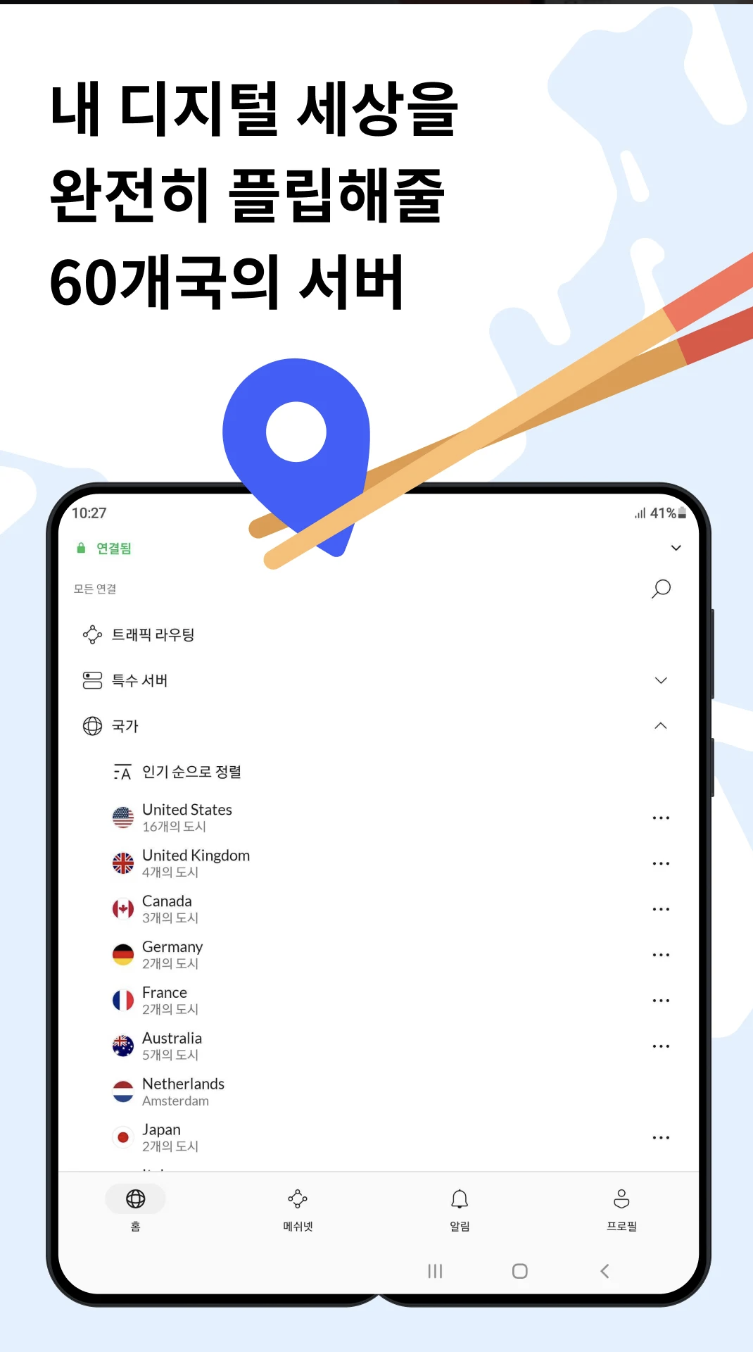 - 다양한 서버: 미국, 유럽, 아시아 등 여러 국가의 VPN 네트워크에 접속할 수 있어요.