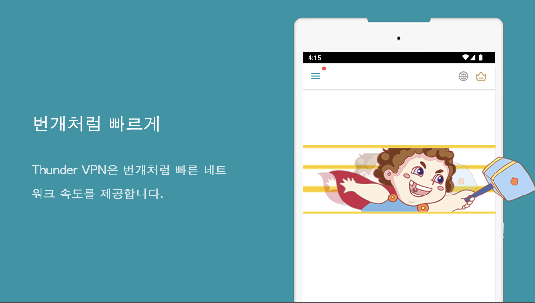 Thunder VPN은 구성 없이 간단한 버튼 클릭만으로 인터넷을 익명으로 사용할 수 있는 무료 VPN 어플이에요.