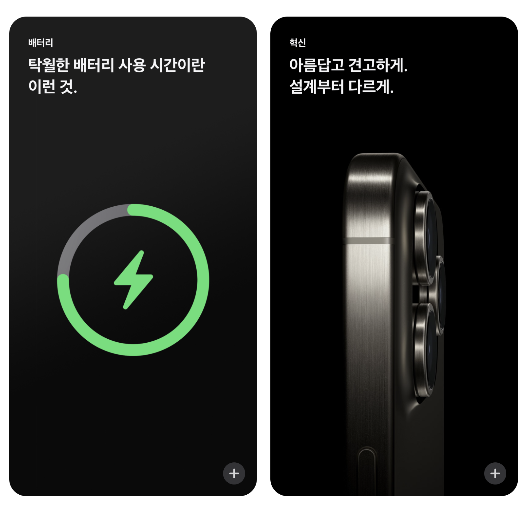 • 기존의 음소거 스위치를 대체한 액션 버튼이 모든 모델에 적용될 예정입니다. 이 버튼은 기계식에서 정전식 터치 버튼으로 변경되어 더 다양한 기능을 수행할 수 있게 됩니다.