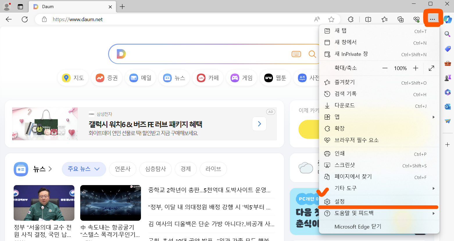 먼저, 여러분의 PC에서 엣지 브라우저를 열어주세요. 평소와 같이 인터넷을 사용하실 준비를 하시면 돼요.