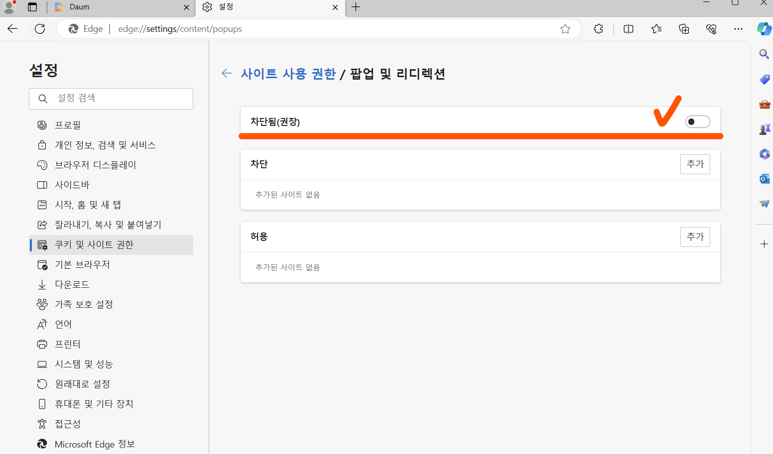 PC에서 엣지 팝업 차단 해제하는 방법