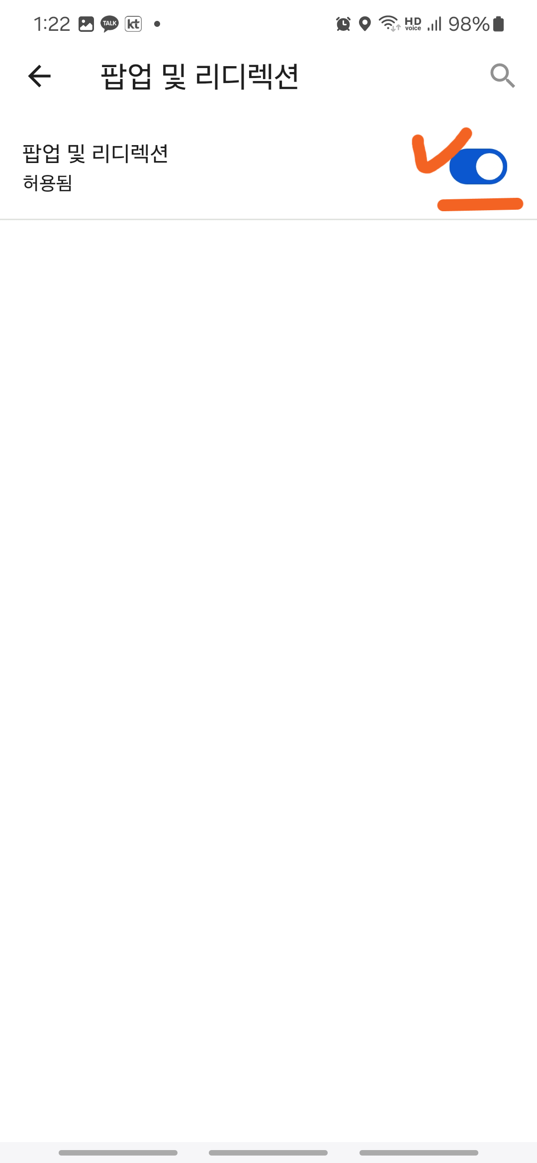 모바일에서 엣지 팝업 차단 해제하기