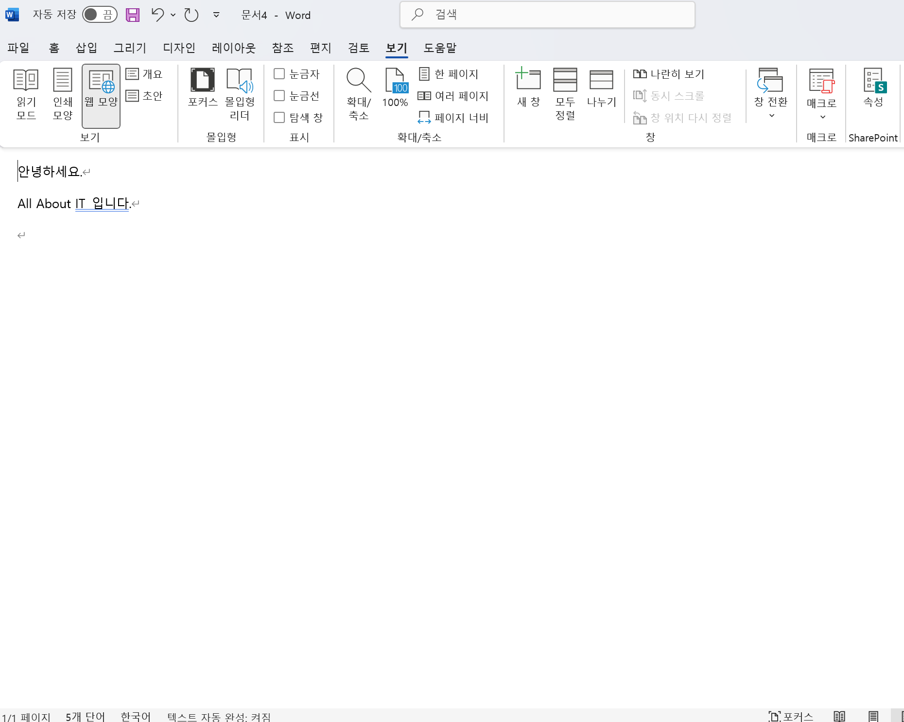 워드 보기모드 5가지