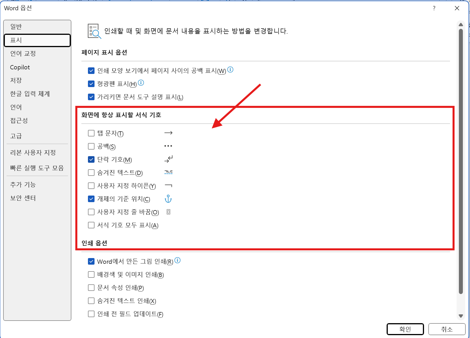 워드 편집기호 숨기기/표시하기