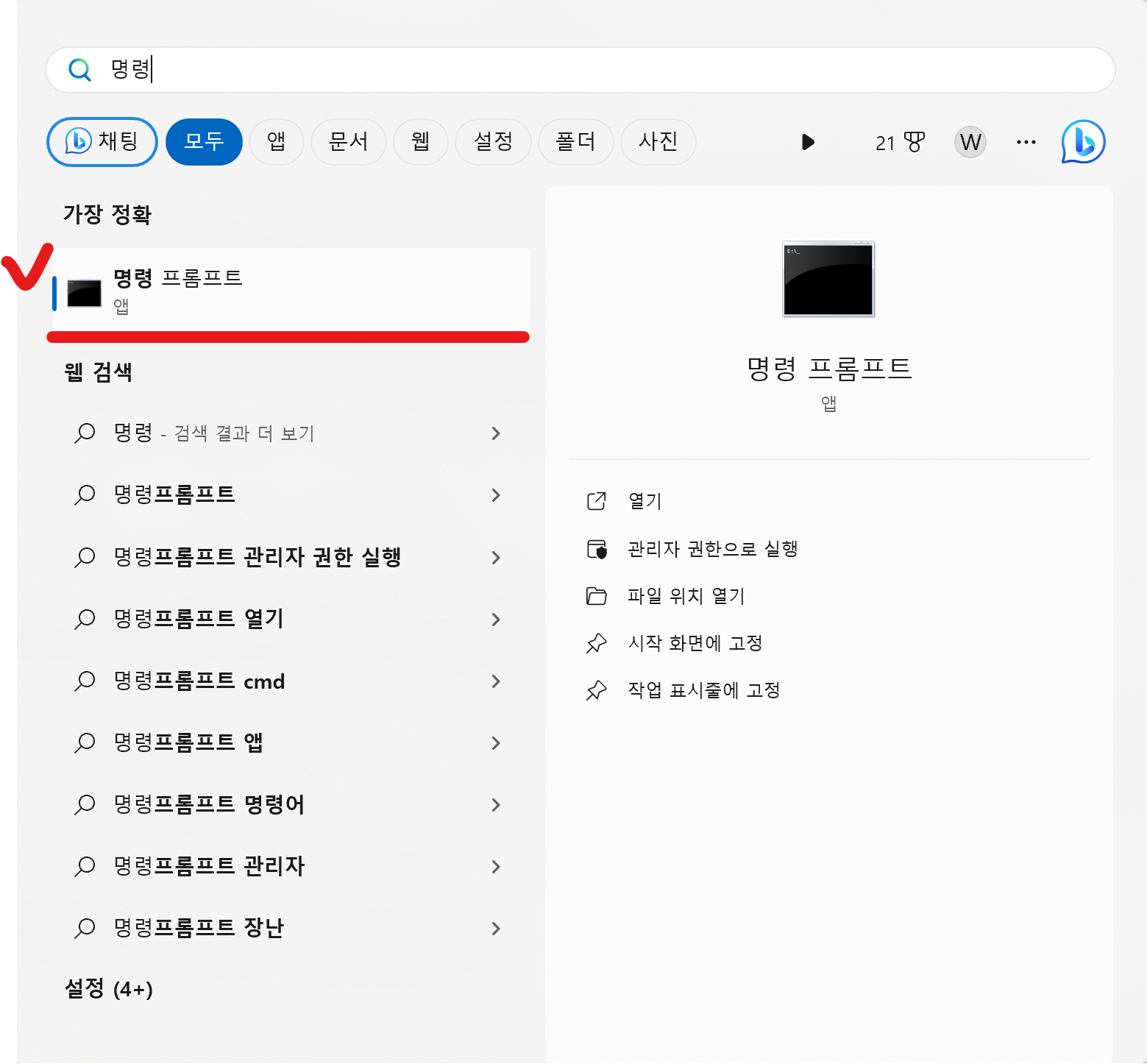 - 시작 메뉴에서 "명령 프롬프트"를 검색하고 실행합니다.