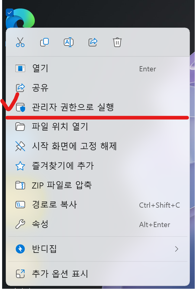 3. 바탕화면에서 관리자모드로 실행하기