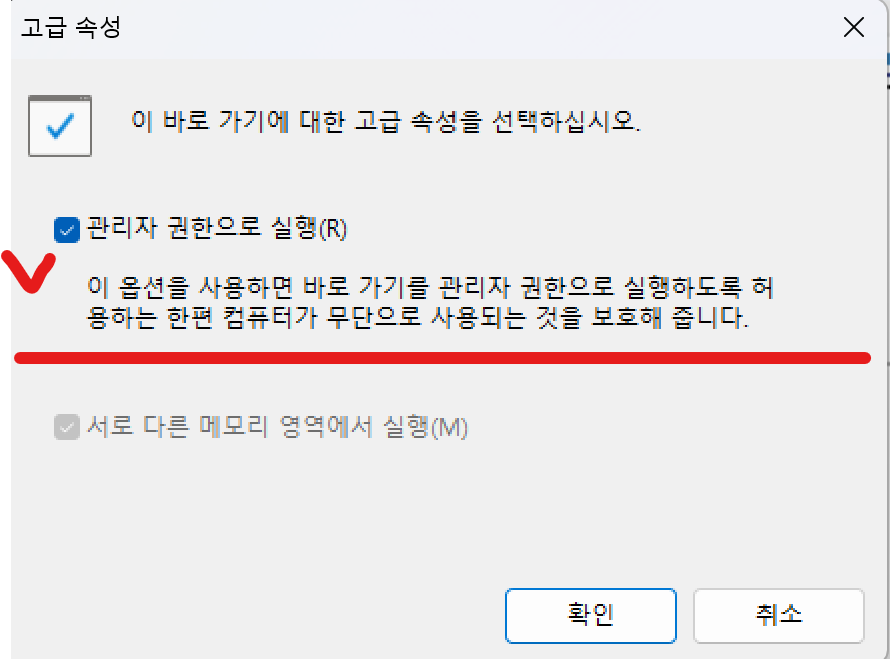 또는, 윈도우 바로가기 메뉴에서 원하는 프로그램을 찾은 후, 해당 프로그램 위에서 마우스 오른쪽 버튼을 클릭하고 "관리자 모드로 실행"을 선택해도 됩니다. 이 방법은 특정 프로그램에 대한 관리자 권한만 필요한 경우 유용합니다.