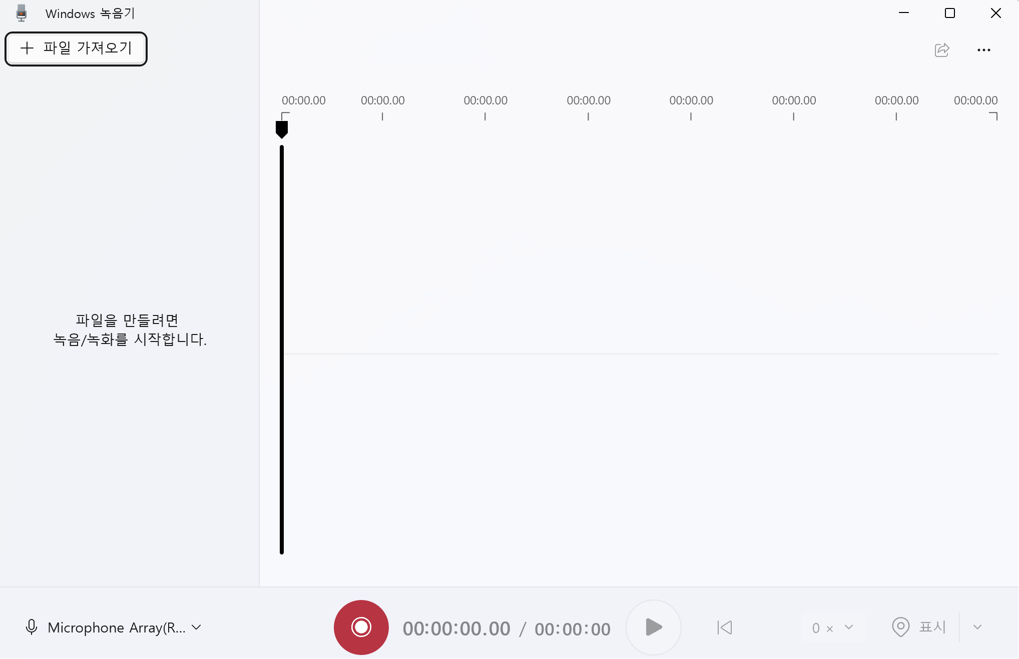 음성 녹음기를 실행하려면, 작업 표시줄에서 " Windows 녹음기"를 검색하거나, "시작" 메뉴에서 " Windows 녹음기"를 클릭하세요. 앱을 실행하면 녹음을 시작할 준비가 완료됩니다.