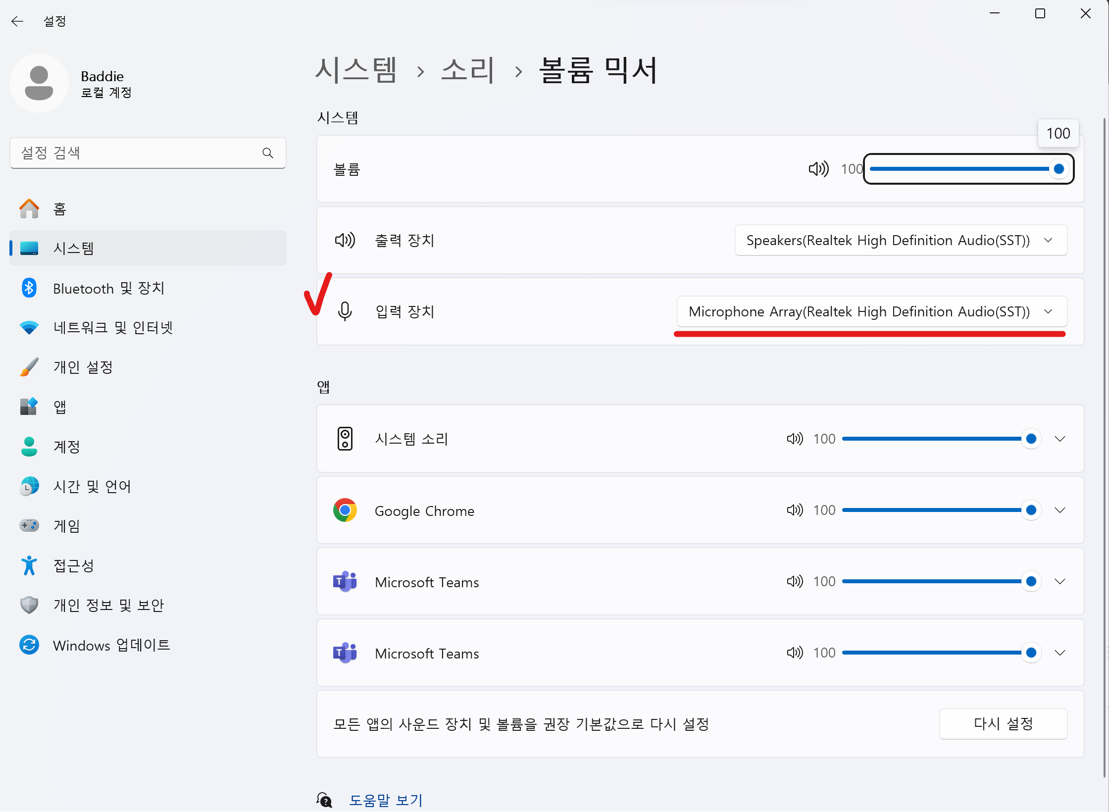 3. 마이크 설정 및 오디오 디바이스 선택하기