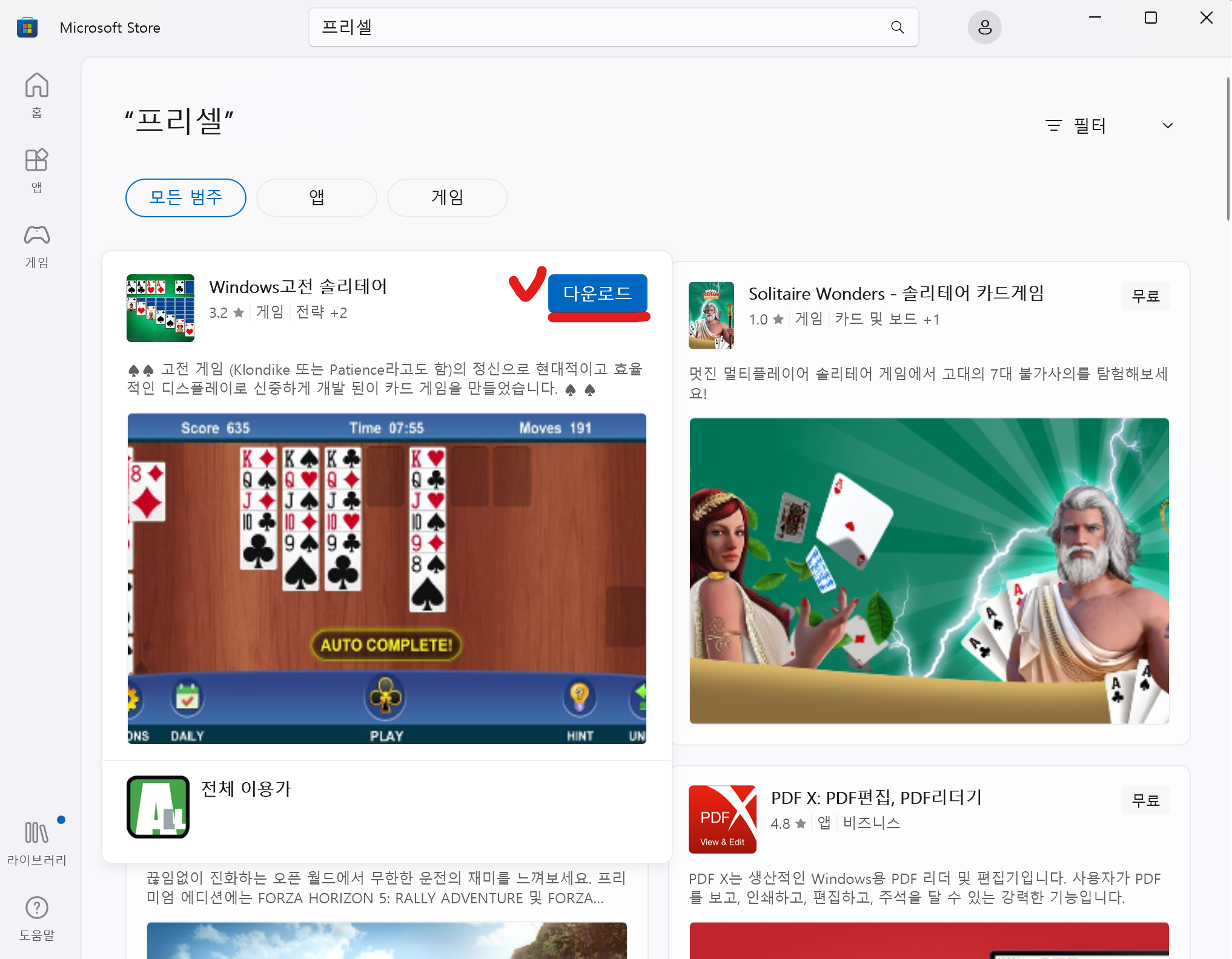1. 윈도우11에 프리셀 카드게임 다운로드하기