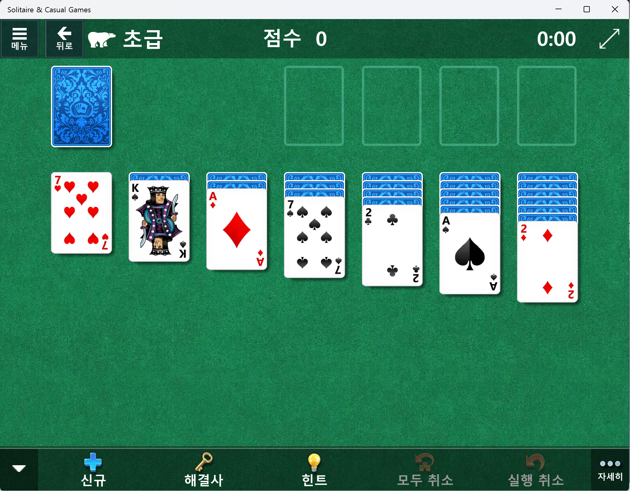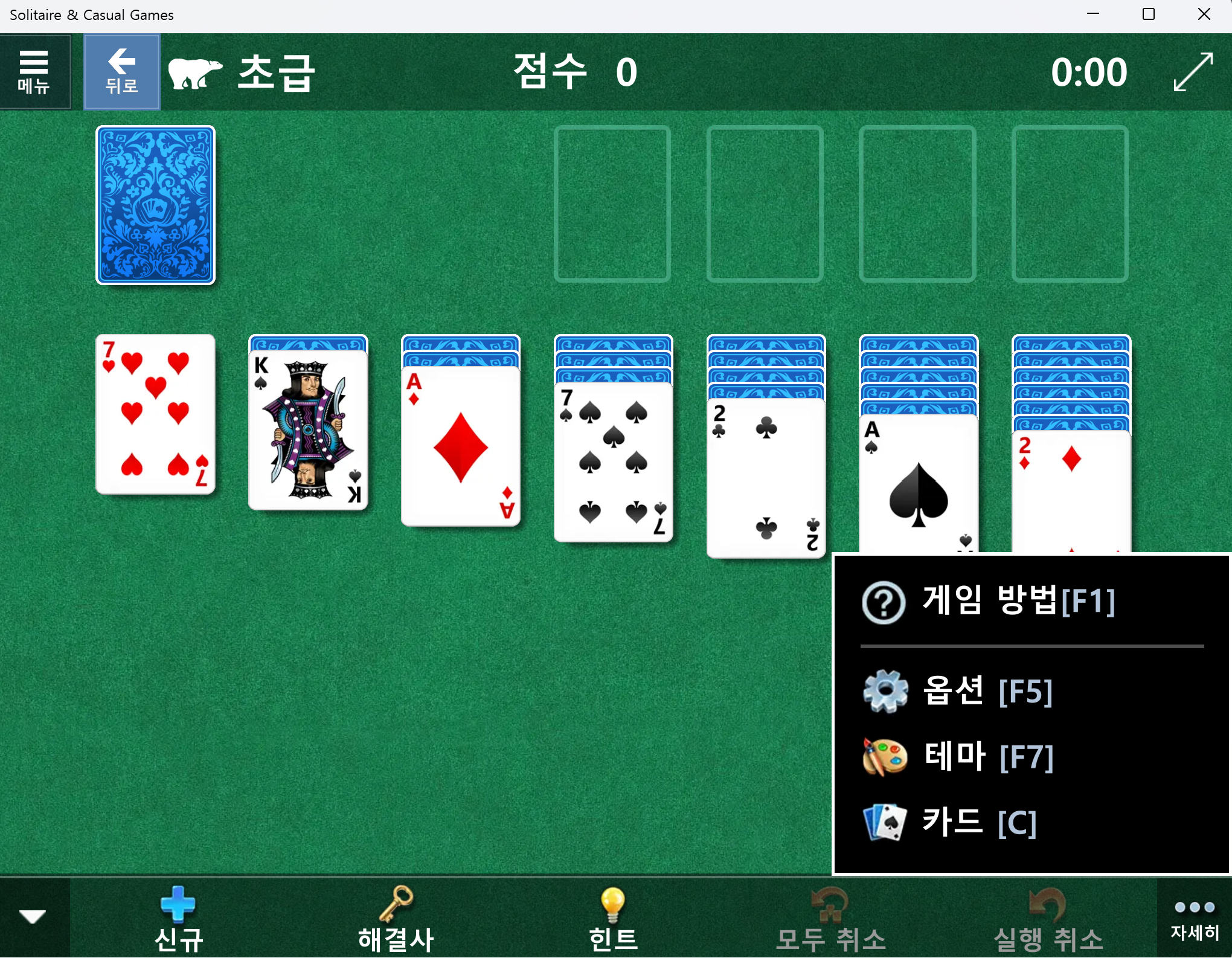 - 모든 카드를 열에 완성시키면 게임이 종료됩니다.