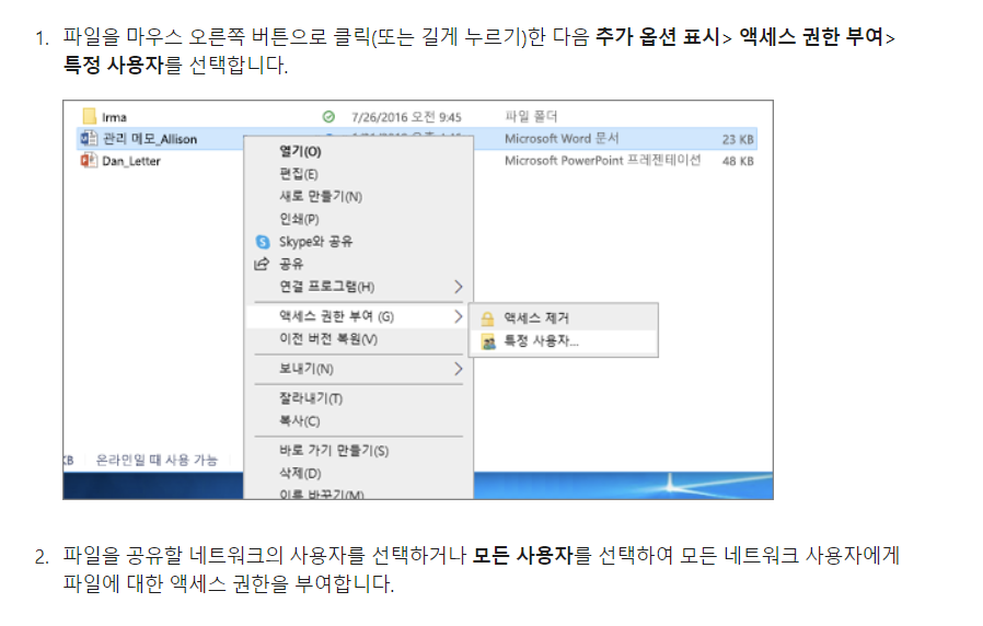 Windows에서 네트워크를 통한 파일 공유 - Microsoft 지원