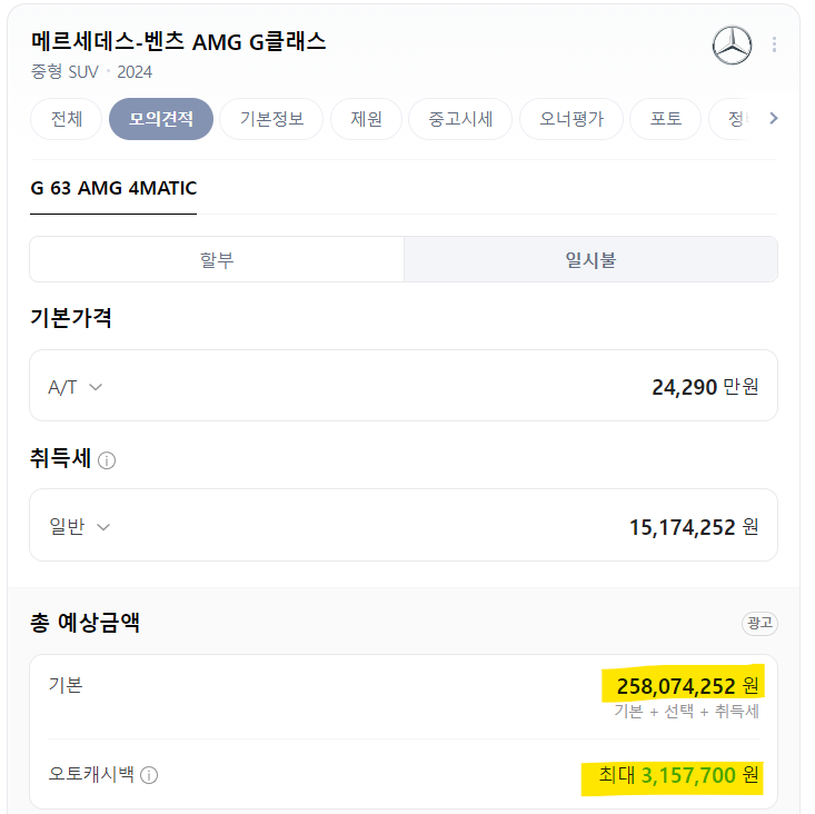 2024 메르세데스-AMG G클래스, 특히 G63 AMG 모델의 시작 가격은 2억 3,800만원부터입니다. 이 가격은 기본 모델에 대한 것이며, 추가 옵션 선택에 따라 최종 가격은 달라질 수 있습니다.