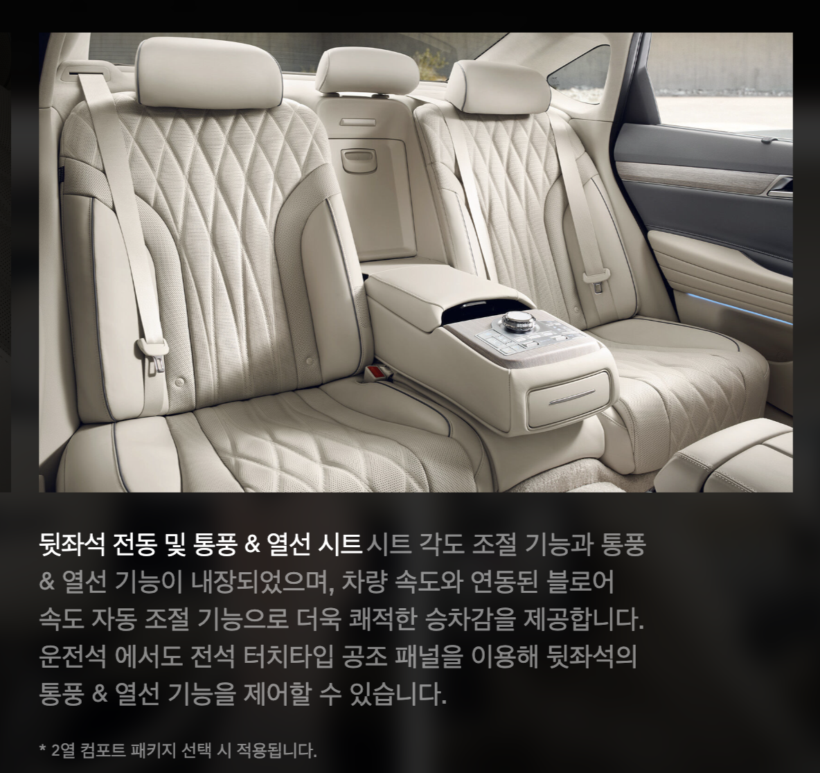또한 공조 시스템은 듀얼 풍향 모드와 공기 청정 시스템을 통해 쾌적한 실내 환경을 유지해줍니다. 미세먼지 센서와 고성능 필터가 포함되어 있어 외부 공기의 유입을 효과적으로 차단하며, 콘솔 내부에는 자외선 살균 기능까지 제공해 위생적인 사용이 가능합니다.