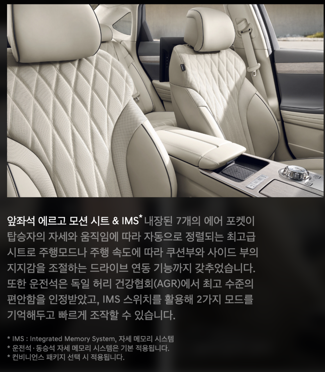 27인치 OLED 디스플레이는 내비게이션과 클러스터가 통합되어 있으며, 무선 소프트웨어 업데이트를 통해 항상 최신 상태로 유지됩니다. 스트리밍 서비스와 함께 제공되는 제네시스 레퍼런스 사운드 시스템(9 스피커)은 몰입감 있는 사운드를 선사합니다.