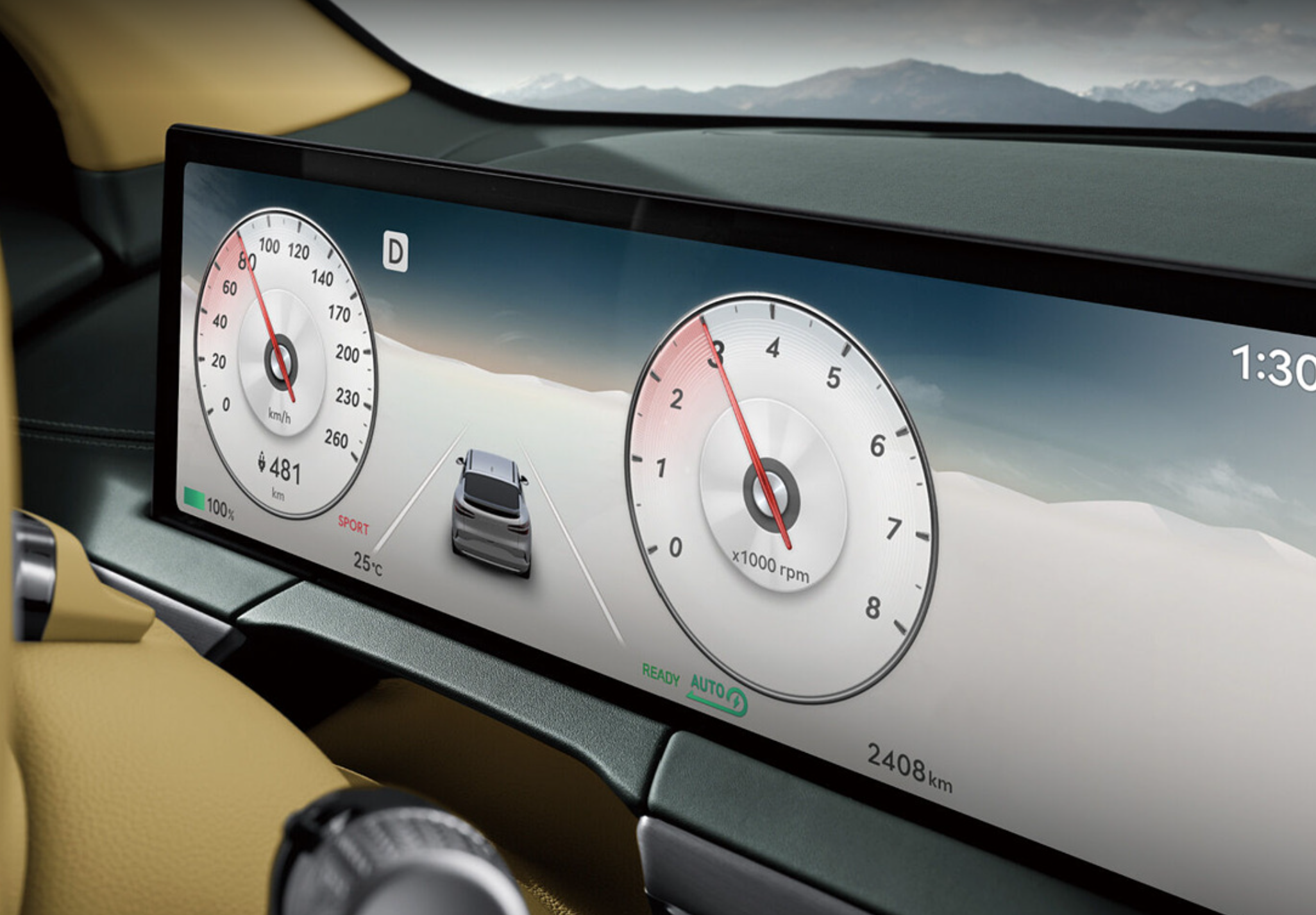 - 27인치 OLED 디스플레이가 적용되어 클러스터와 내비게이션이 통합된 형태로 구성되었다. 이를 통해 시인성이 향상되고, 직관적인 조작이 가능해졌다.
