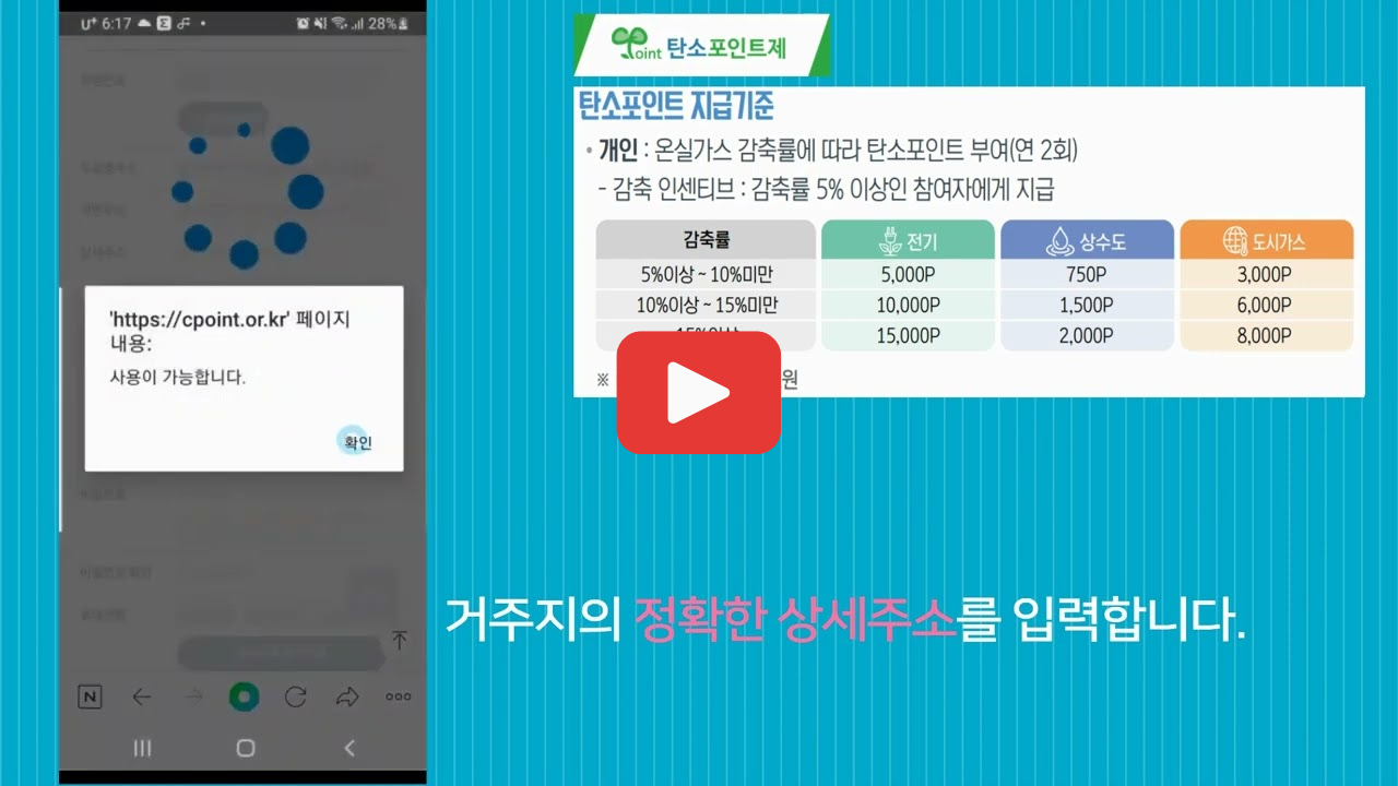 👇 탄소중립포인트 에너지 가입절차(모바일) 안내 동영상