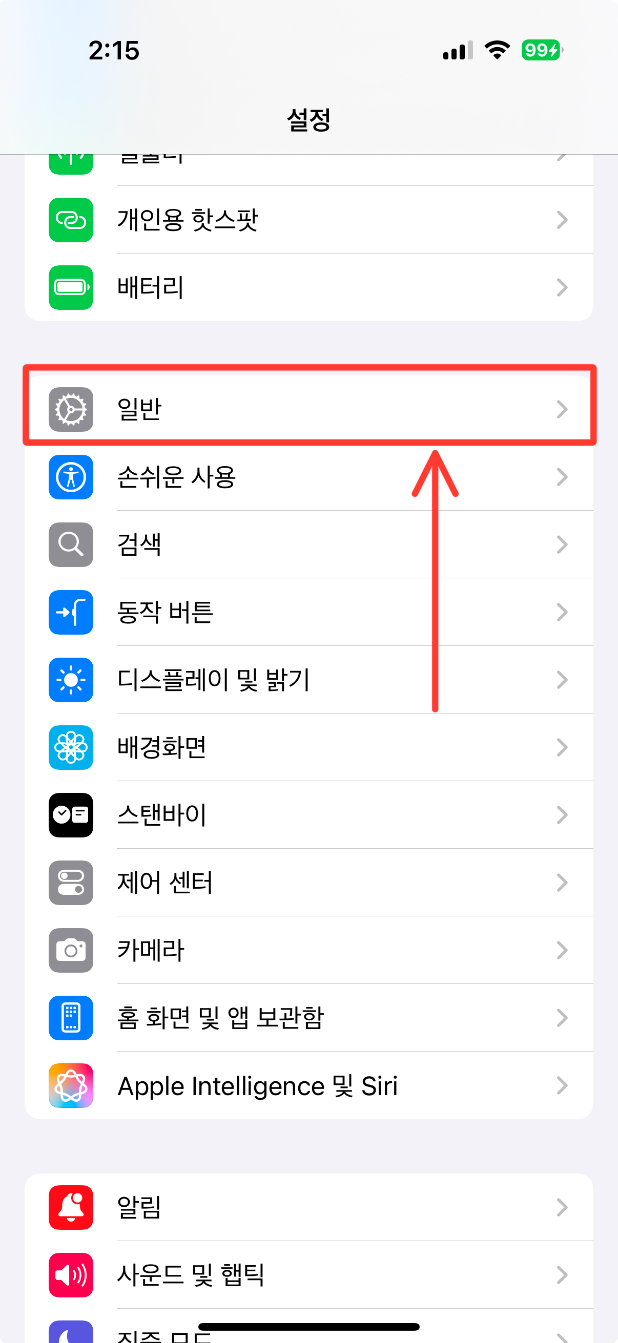 - 설정 앱 열기: 아이폰에서 설정 앱을 실행한 뒤 일반 메뉴로 들어갑니다.
